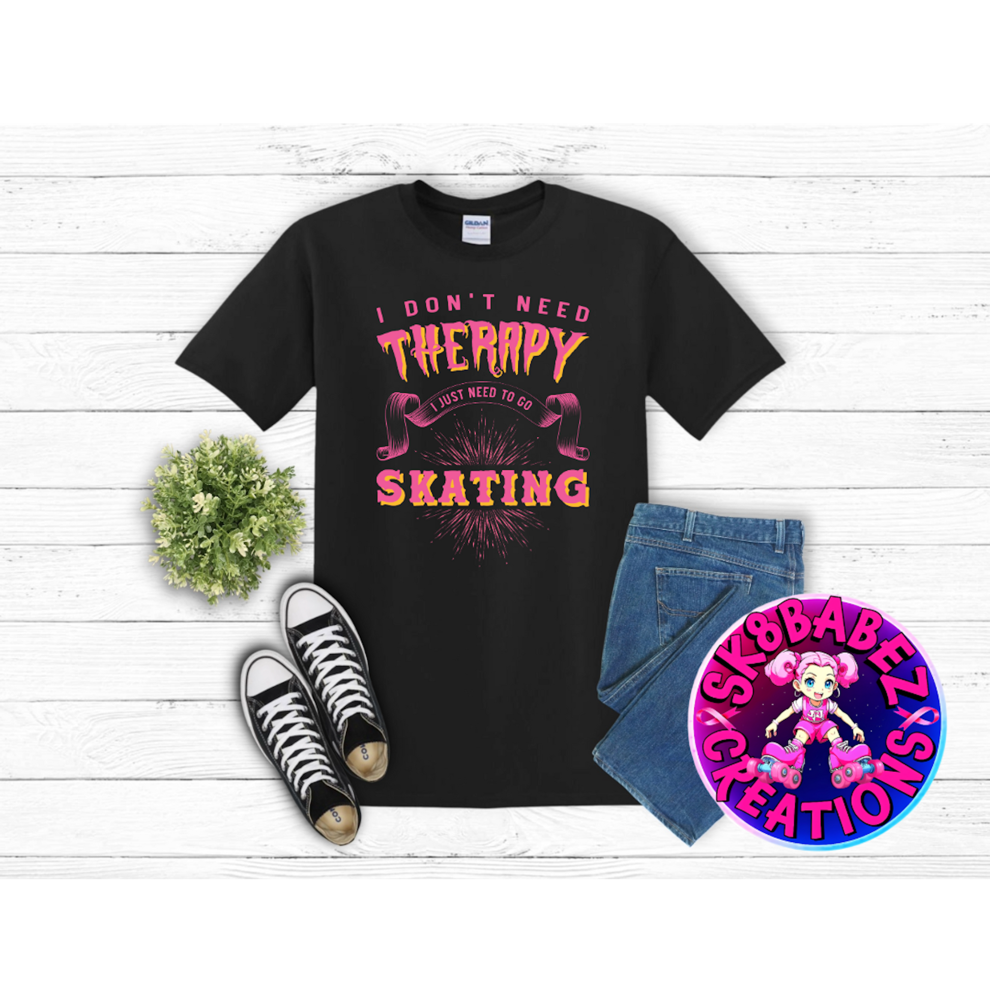 If the rink is your happy place and the music is your medicine, this tee says it all. The “I Don’t Need Therapy, I Just Need to Go Skating” shirt is made for those who clear their mind one roll at a time.